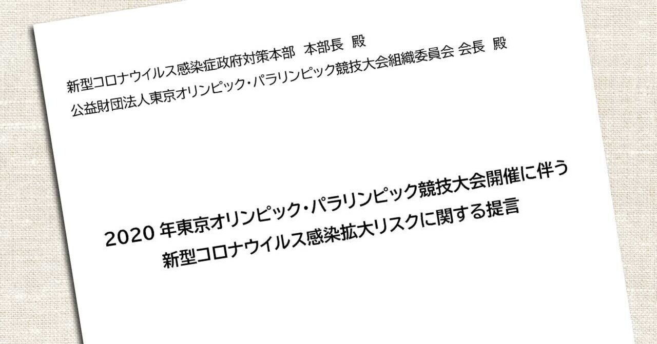 2020年東京オリンピック・パラリンピック競技大会開催に伴う新型コロナウイルス感染拡大リスクに関する提言|コロナ専門家有志の会 | COVID-PAGE